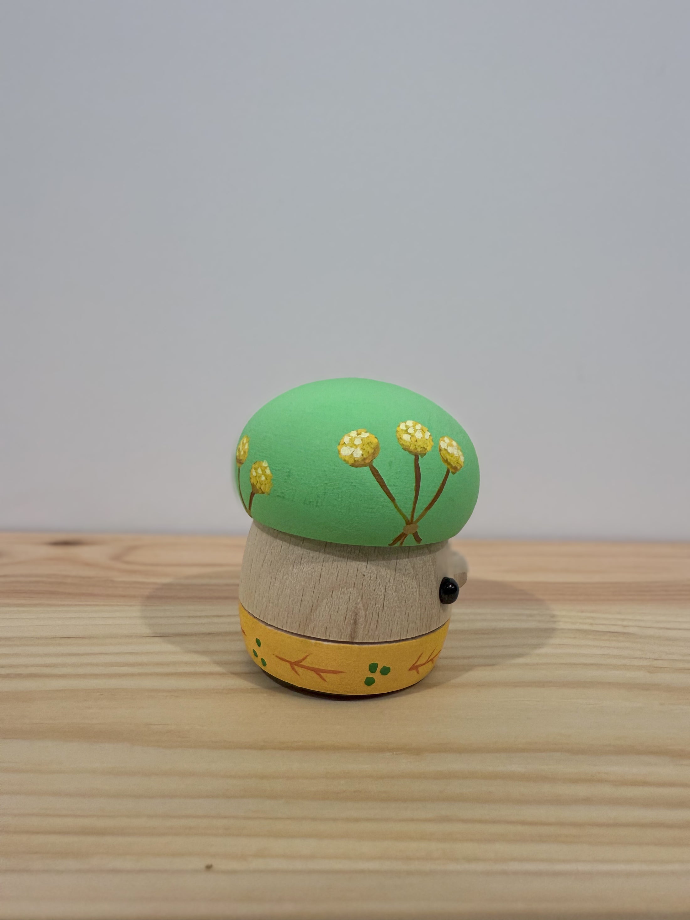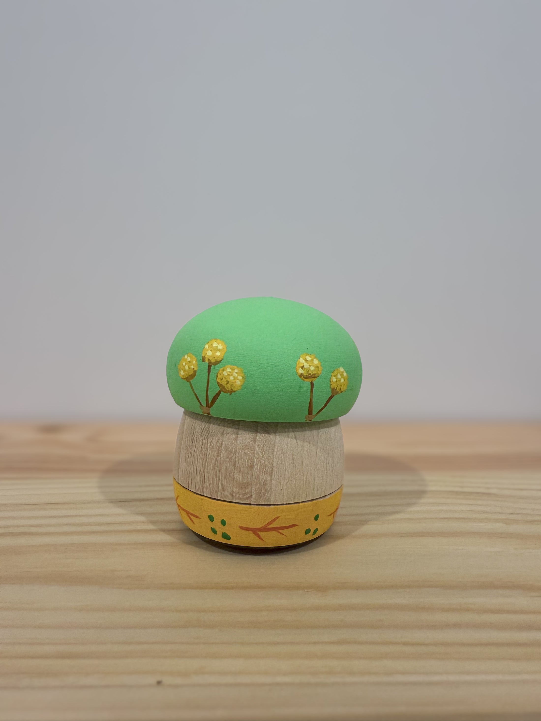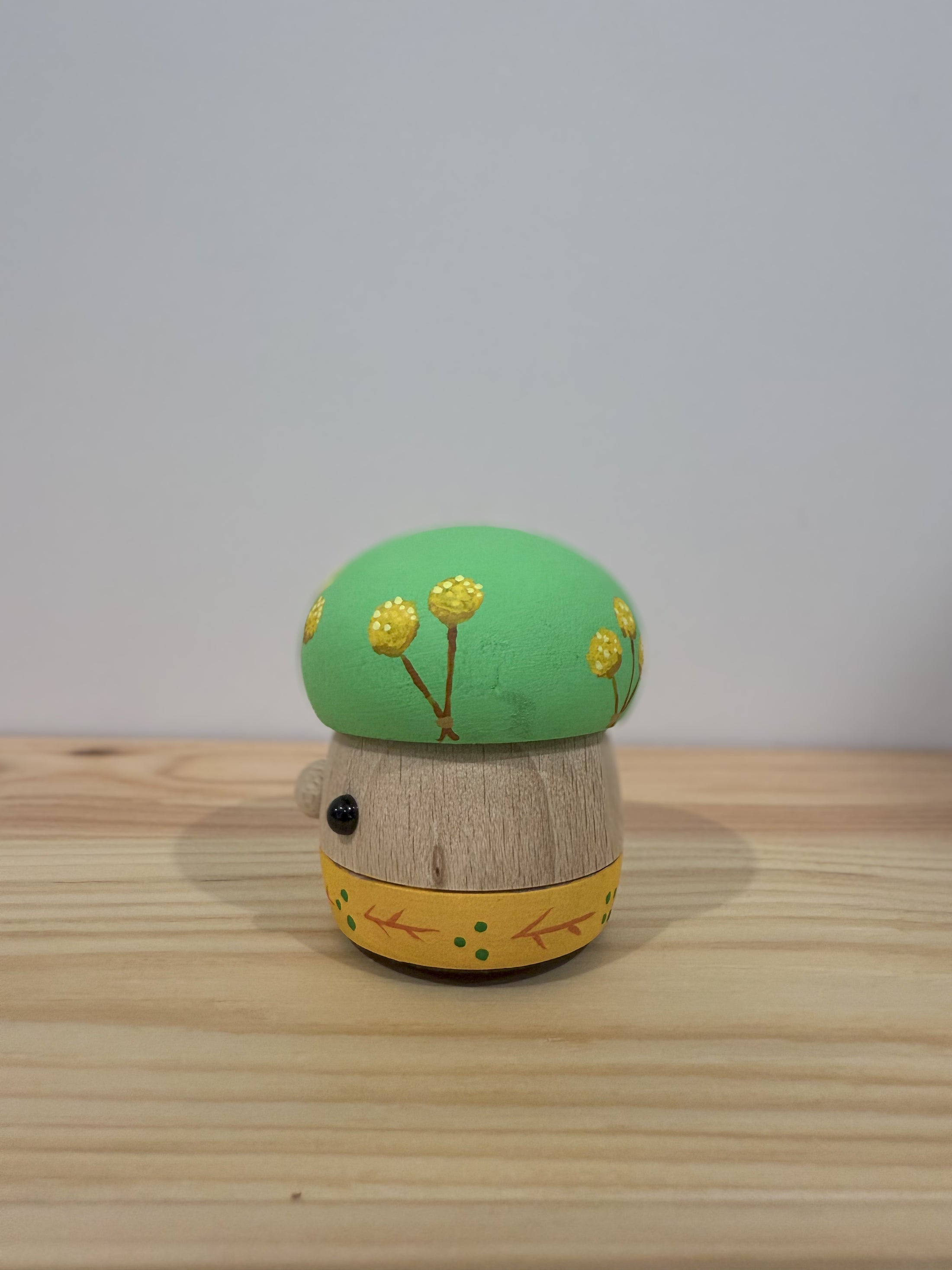 Meet Donguri Ohana Billy Button - this Billy Button piece features delicate, rounded yellow blossoms that stands out against the vivid green background, creating a stunning contrast.