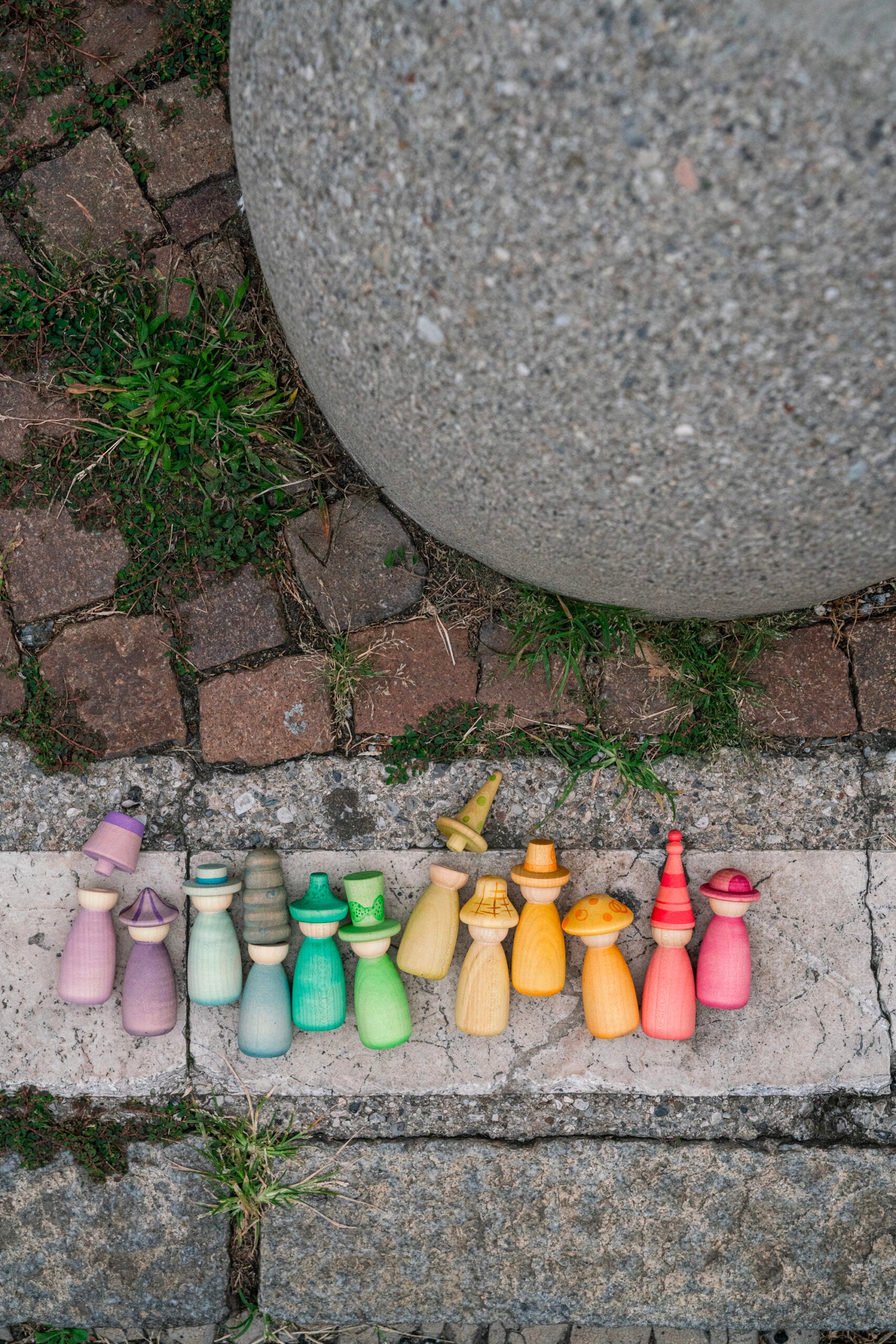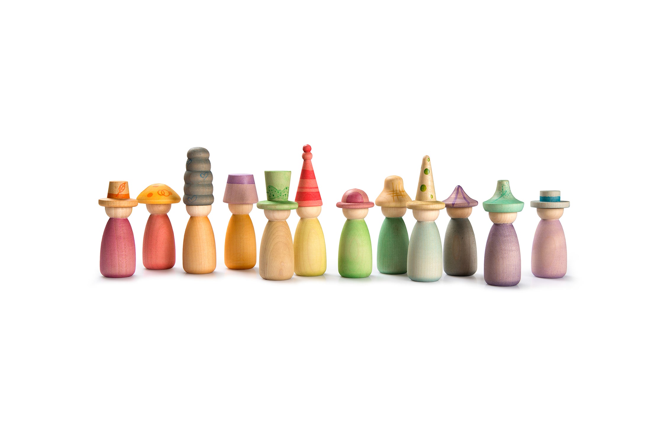 Contains 12 Nins in soft rainbow tones ⁄ 65mm height ⁄ different final heights including the hats.