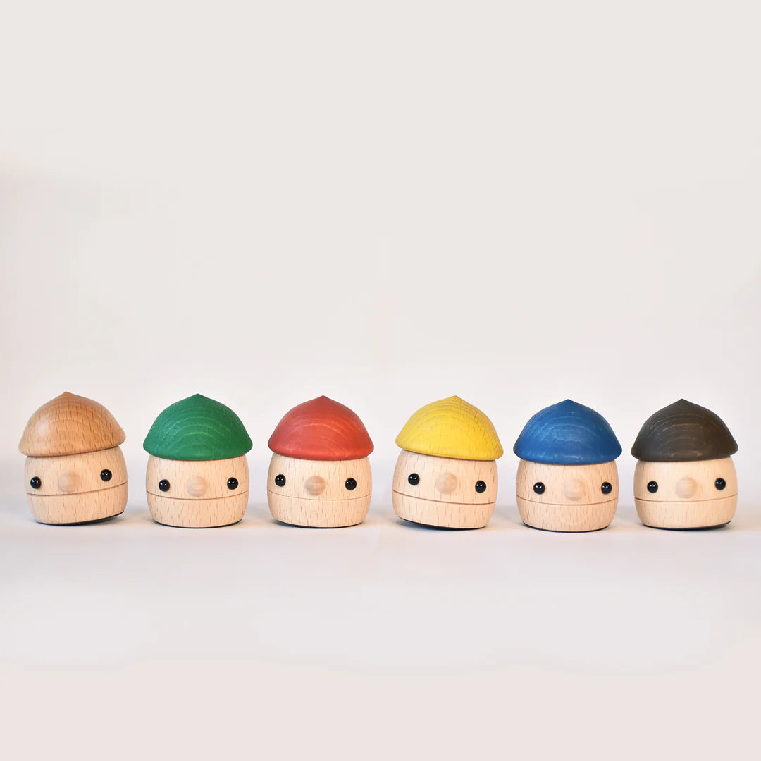 With its round eyes and slightly large nose, these adorable little acorns may seem expressionless at first glance. However, like all great open-ended toys, they are a canvas for your child's imagination - able to laugh, cry or smile depending on your child's perspective.