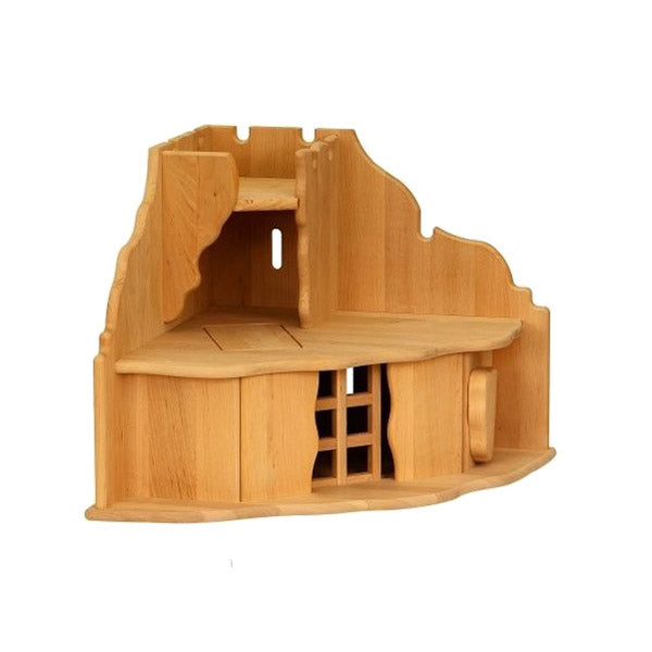 Made in Poland from sanded alder wood with a natural oil finish. With look out point, a room with sliding door, secret entrance and trap door to roof. Will work well with a variety of play figures.