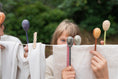 This Grapat collection of 6 double-faced puppets is perfect for inventing stories! On one side, you’ll find a little fox, a wise owl, a moon, a pretty flower, an angry wolf, and a kind