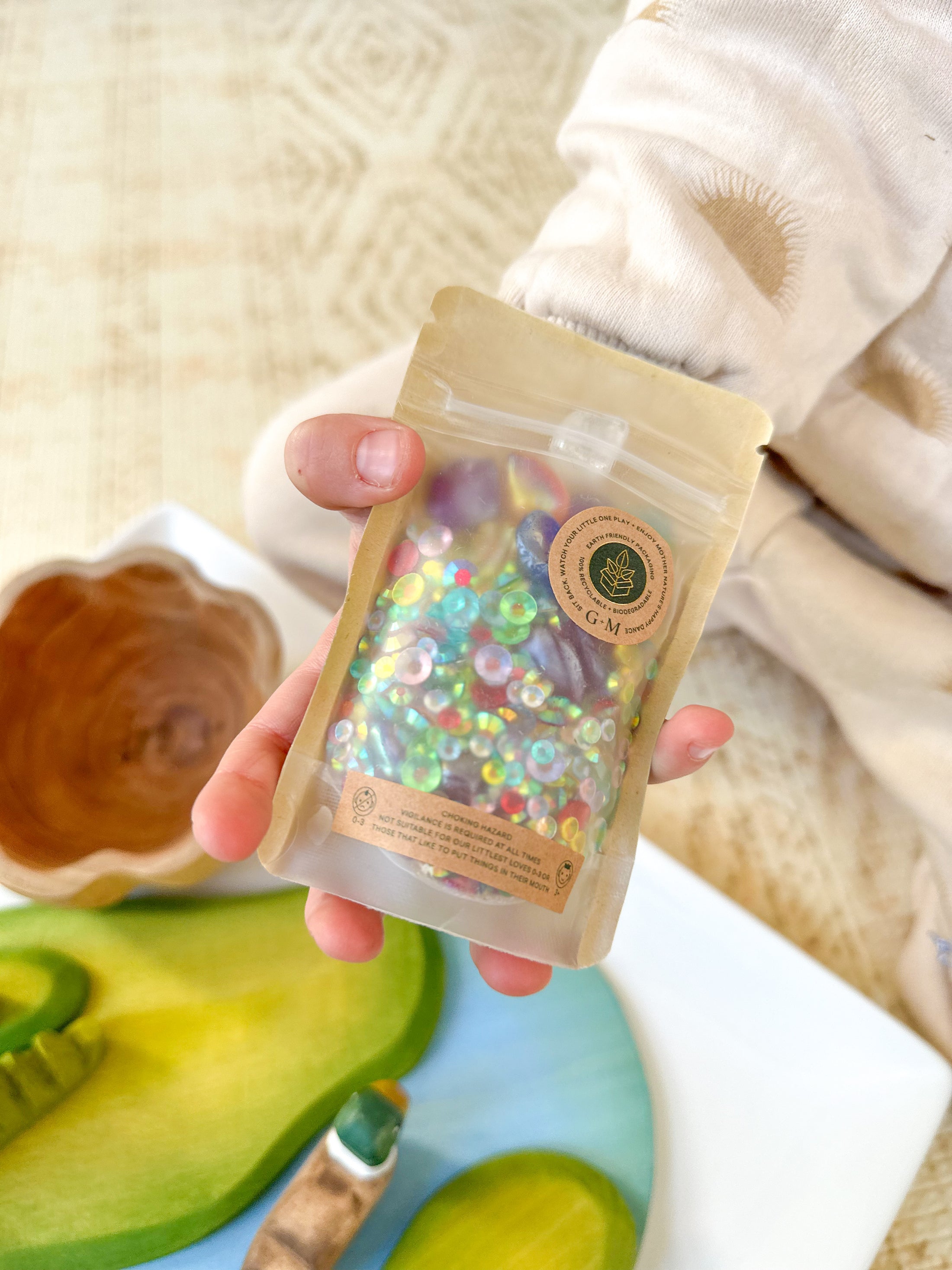 Our Endearing Jewels are awe-inspiring, mesmerising rainbow-coloured natural crystals surrounded by the most spectacular twinkling, glimmering, shimmering eco-resin rhinestones. Your little loves imagination will run wild with the addition of this sensory play resource.