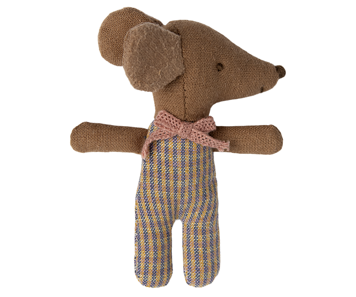 A classic Maileg item. This mouse is ready for hours of play and sleeps tight in the little matchbox. The clothes and bedlinen are made of soft fabrics with unique prints in beautiful colors.