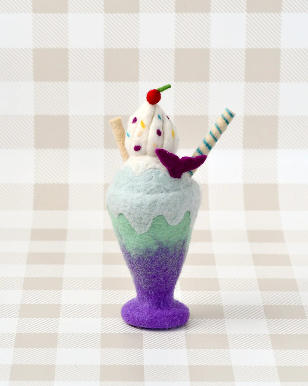 Dive into a world of enchantment with our Felt Mermaid Milkshake! This magical playtime treat features a dreamy cream topping sprinkled with colourful dots, a whimsical wafer stick, and a mermaid tail.