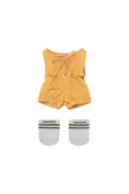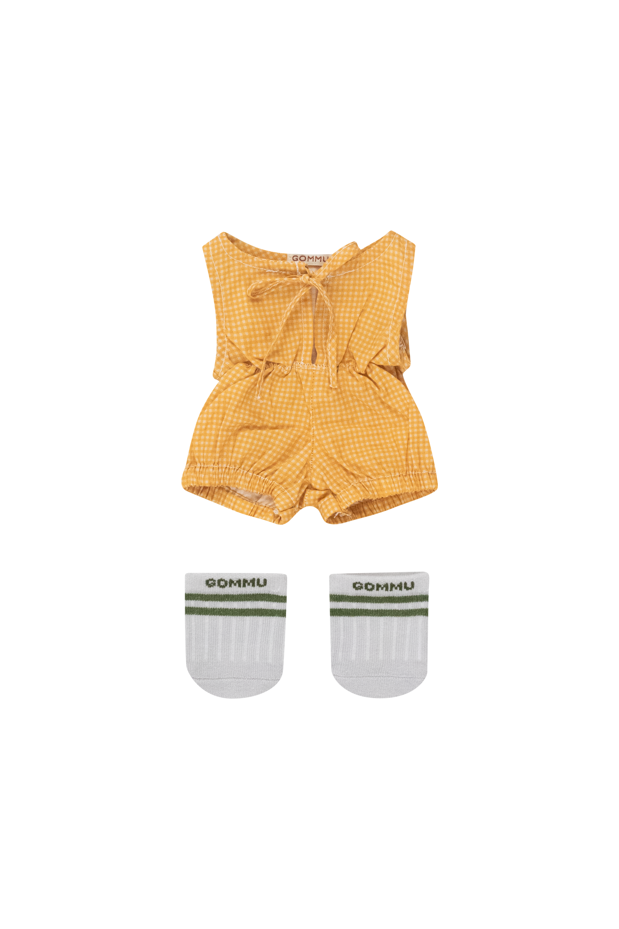 Elevate your GOMMU's wardrobe with this cool set! This outfit features a SLEEVELESS ONE-PIECE made of soft poplin, adorned with a cheerful pattern, creating a bright and sunny vibe. The set is complemented with a "varsity style" PAIR OF SOCKS, perfect for adding a touch of whimsy. Dress your GOMMU in this set that perfectly combines comfort, cuteness and style!.